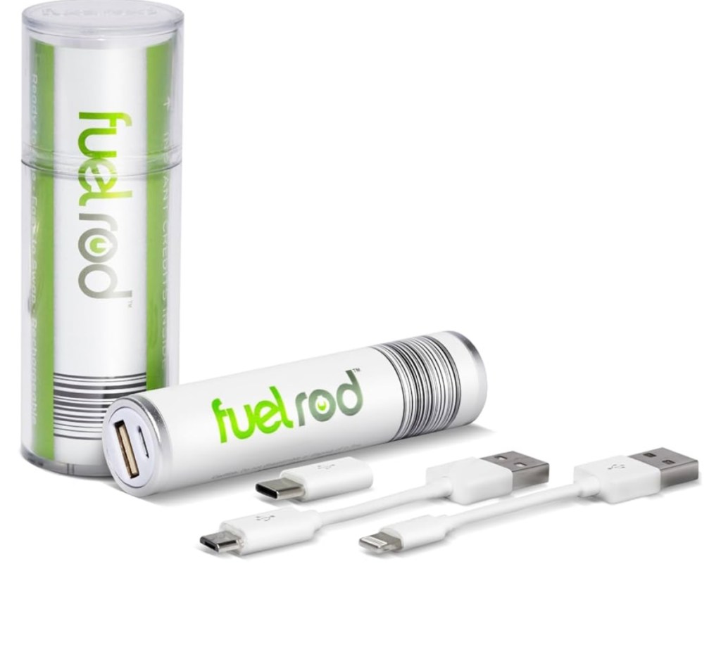 Compact portable chargers that you can charge on your own, or deposit the empty one into a machine and it will dispense a charged one! Each park had a couple of stations.